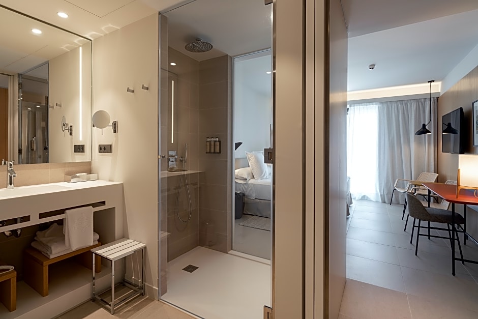 The suite offers air conditioning, a mini-bar, a balcony with sea views as well as a private bathroom featuring a bath. The unit offers 1 bed.